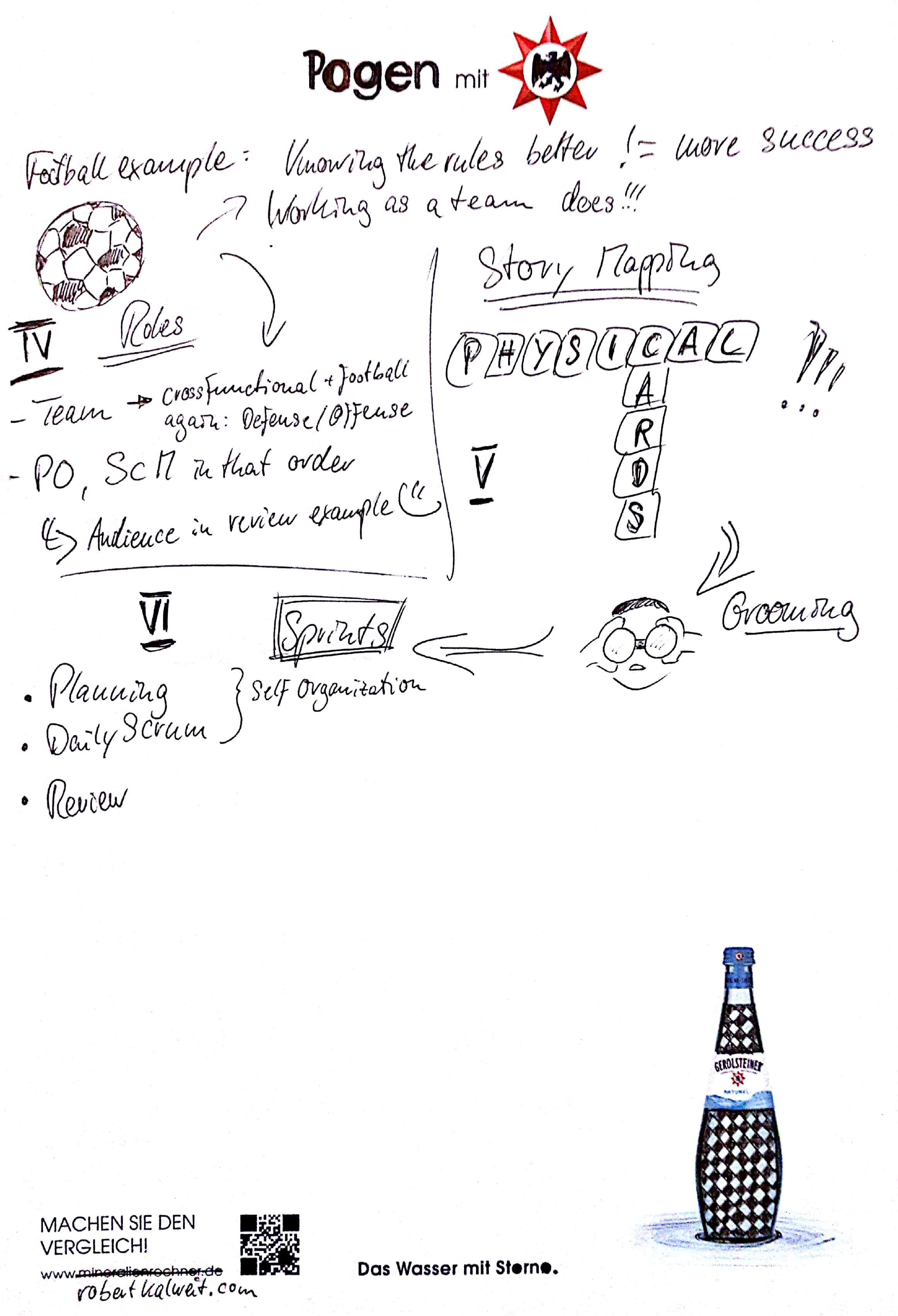 Following my approach from the Global Scrum Gathering Dublin 2017 I again scribbled notes throughout the training, taking a protocol of the “agenda”, practicing my drawing skills and of course memorizing some of the most noteworthy points.